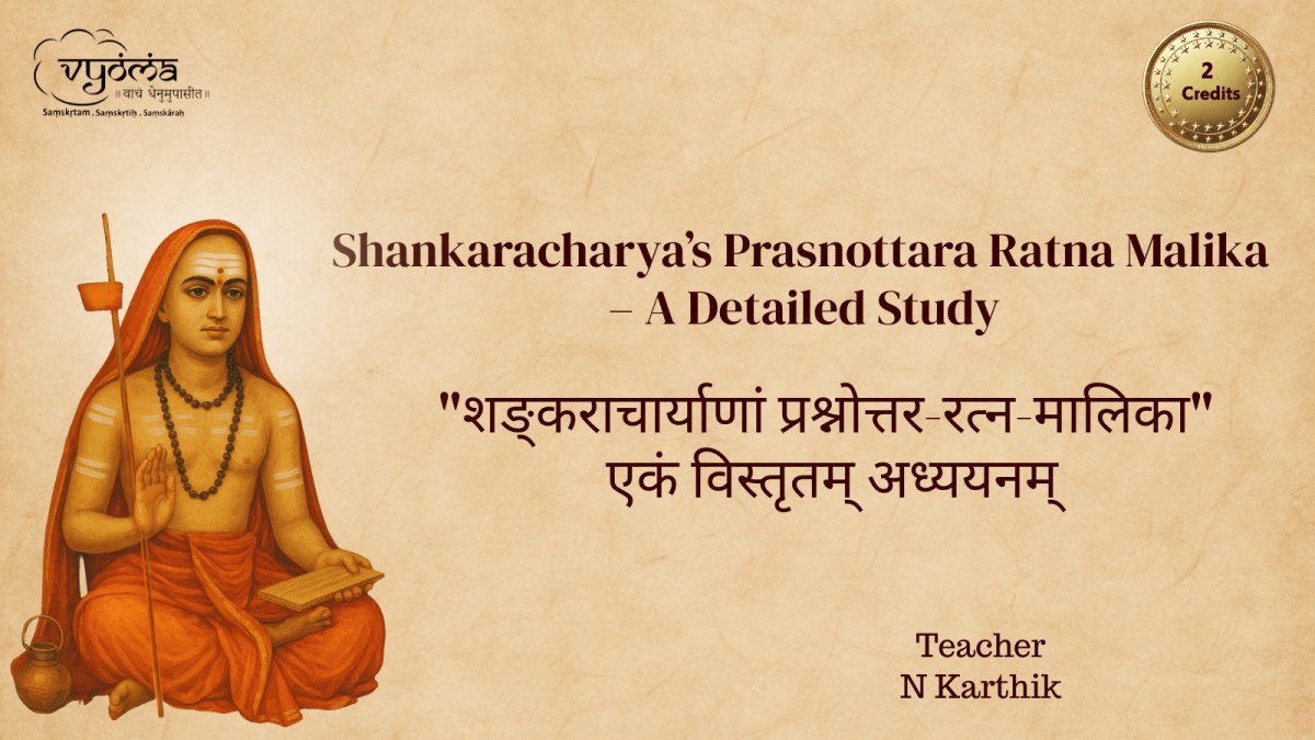 Acharya Shankara’s Praśnottara Ratna Mālikā is set in the context of Sanātana Dharma and addresses many existential questions. It comprises a set of 67 questions and answers. These questions are profound, and Acharya answers them lucidly for us. This work is a stepping stone to Acharya’s expounding treatises on Vedanta. The course will elaborate on these questions and answers. It’ll also draw answers to these questions from Acharya’s other works and relevant Śastrās for deeper contemplation.